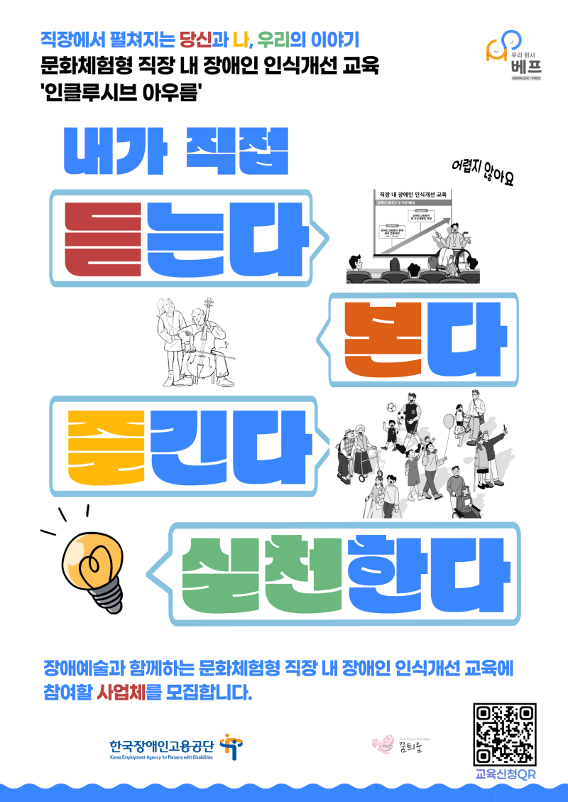 인클루시브 디자인 및 장애예술인 작품 패턴 디자인 의상을 장애예술인의 공연과 함께 장애인 패션모델이 소개하는 융복합 패션공연과 장애예술인과 함께하는 인형극을 통해 장애유형, 장애인 동료에 대한 에티켓, 장애 보조기기의 작업 환경에의 적용, 장애인고용 관련 법 및 제도 등 직장 내 장애인 인식개선 교육의 내용에 대해 문화체험과 함께 보다 쉽게 이해하도록 하였습니다.