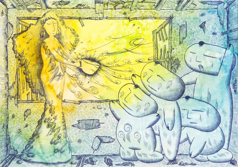 * 작품설명 : 급격히 변화하고 있는 이 사회에 소외되고 어려운 이웃들이 점점 늘어나고 있습니다. 이들은 먹고살기가 힘들어 몸과 마음이 지쳐가고 있습니다. 몸과 마음이 지쳐가는 이웃들에게 커피의 향과 맛으로 그들의 지친 몸과 마음의 위로가 되는 따뜻한 커피를 생각하며 '커피 여신'이라고 제목을 지었고 이것을 상상하며 그려보았습니다.