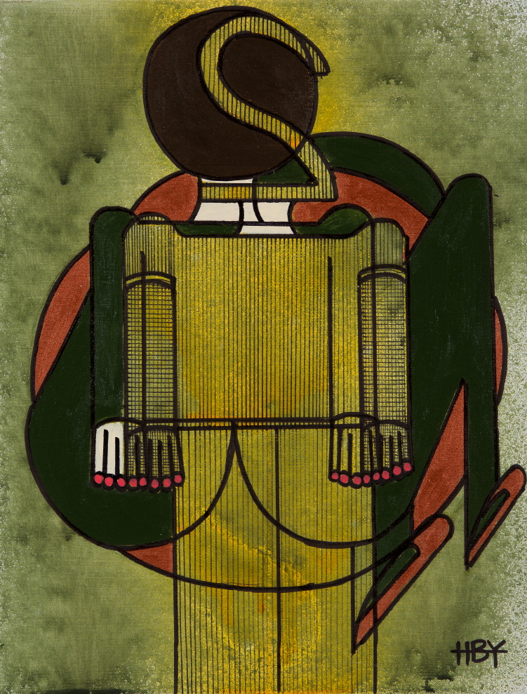 작가는 어린시절 사랑받던 그 형상을 엄마가 자기를 업어줬던 모습으로 표현해 냈다. 앞뒤의 모습을 동시에 표현했으며 거기에 포대기까지 평면으로 입체파를 연상시킨다.