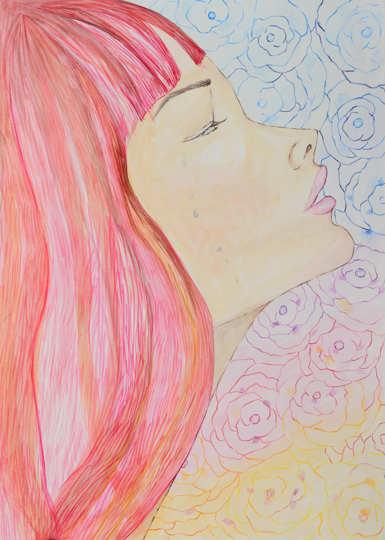 서늘하고 알록달록한 바람이 꽃향기와 같이 내 피부에 닿아 나도 모르게 눈물이 흐르는 느낌을 표현했다.