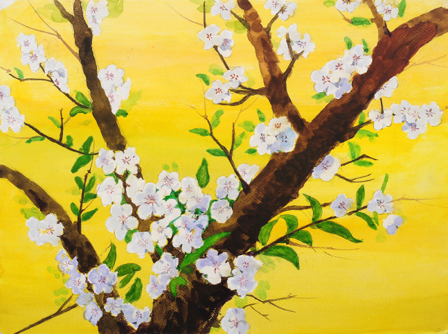 지난 봄 순백의 색으로 세상이 뒤덮이던 벚꽃이 그리워 따뜻했던 봄날의 벚꽃을 그림으로 담게 되었다.